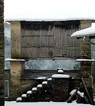 Ya quedó dicho que con frecuencia la cámara del hórreo descansa directamente sobre una base cerrada o granero a nivel del suelo, conformando una unidad de almacenamiento dividida en estratos más o menos separados del suelo y más o menos próximos al aire. Esta solución se extiende por toda Galicia, pero es en el norte lugués y en el occidente asturiano donde encontramos una variante que viene a explorar la eficiencia de esta compactación de usos auxiliares.
