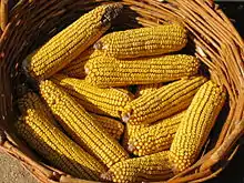 El maíz se siembra a finales de abril o comienzos de mayo y se cosecha en octubre. Como las plantas precisan guardar una cierta distancia, los primeros brotes se entresacan para aligerar los terrenos de cultivo. Gracias a esta transparencia es posible sembrar en la misma parcela cultivos intercalares tales como habas o calabazas, y si se va a dedicar a pasto de invierno se puede sembrar la hierba antes de la cosecha del maíz. Además del grano, las hojas y las cañas del maíz producen un gran volumen de forraje que permite mantener al ganado en establos.[12]
