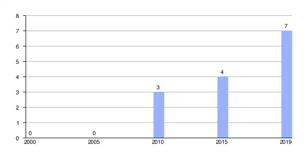 Gráfica de evolución demográfica de Hórreos (aldea) entre 2000 y 2019 |