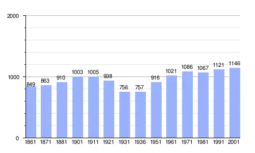 Gráfica de evolución demográfica de Hône entre 1861 y 2001 |