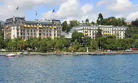 - Suite Lavaux : único ático-terraza del hotel con acceso privado (22 m²), vista panorámica sobre el lago, los Alpes y el parque. Superficie total de 300 m²