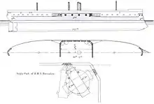 En 1878 sobre su cubierta principal se instalaron dos montajes lanzatorpedos para torpedos Whitehead de 355 mm (14”)