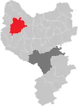 Se encuentra ubicada al oeste del estado, a poca distancia al sur del río Danubio, al oeste de Viena y cerca de la frontera con el estado de Alta Austria.[2]