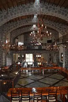 Hay tres edificios principales, una casa principal, una capilla y dormitorios. La casa principal tiene un gran comedor, clases y salas de reuniones, biblioteca, una sala de juegos y más. La capilla tiene el diseño tradicional de hacienda, pero es mucho más grande, con un espacio para albergar reuniones de hasta 300 personas. Los dormitorios están al lado de estos edificios y albergan hasta 500 estudiantes.[1][3]