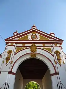 Elemento decorativo propio de esta hacienda son los cuatro relojes de sol, realizados con pintura en color almagra, que flanquean los accesos por el interior a las entradas de ambos patios.