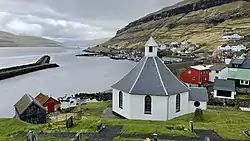 ![]() Haldarsvík, con su iglesia octogonal en primer plano.