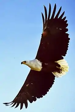 El pigargo vocinglero (Haliaeetus vocifer) es una especie de ave accipitriforme de la familia Accipitridae ampliamente distribuida por los ríos y lagos del África subsahariana, que se alimenta básicamente de peces. No se conocen subespecies.[2]
