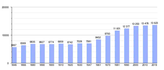 Todos los datos históricos relativos al actual municipio, el siguiente gráfico refleja su evolución demográfica, incluyendo municipios después de efectuada la fusión el 1 de enero de 1977.
