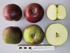![]() La variedad de manzana 'Hambledon Deux Ans' con secciones cruzadas. | ||