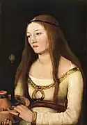- Catalina Schwartz con atributos de la santa de su nombre, h. 1509-1510, Schloßmuseum, Schloß Friedenstein, Gotha.