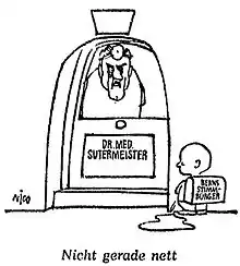 Para el psiquiatra suizo Jakob Klaesi, el trabajo Psicosomática de la risa y del llanto de Sutermeister representa, en primer lugar, una crítica a la teoría de los chistes de Sigmund Freud, tratándolo psicosomaticamente. Klaesi no concuerda con que Sutermeister, en la parte sobre el humor en la Antigüedad clásica, alega que el hombre prehistórico y Johann Wolfgang von Goethe habrían carecido de sentido de humor. No obstante, Klaesi elogia el trabajo como estimulante, como «llevando a la creciente curiosidad y oposición del lector».[4]