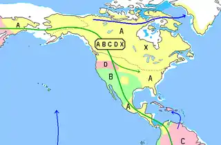 - América Septentrional: Es el haplogrupo predominante, especialmente en los esquimales y pueblos na-dené. La frecuencias más altas están en el Canadá en los na-dené/atabascas como los haida con 95% y dogrib 90-100%.[10] En los inuit tienen frecuencias del 62-97%: en las islas de Alaska 75%, Canadá 87.5% y Groenlandia 96%.[6] Es haplogrupo predominante en los pueblos bellacoola, navajo, siux, lakota, anishinaabe, ojibwa, kikapú, etc. Es minoritario en aleutas (28.5%).