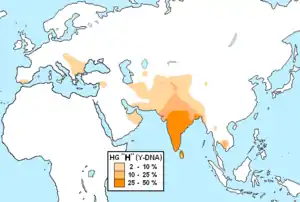 - H1a1a4a (Z14588, Z5871): disperso en el Indostán, Arabia,[8] Laos y Camboya.[1]
