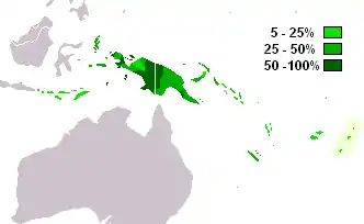 Según otros autores encontramos frecuencias importantes en Vanuatu 30%,[3] Nueva Irlanda 29%,[4] Fiyi 15% e islas Salomón 9%.[5] Menores frecuencias se encuentran en Micronesia con 6% (Karafet et al 2005), Polinesia 3%, destacando Tonga con 8% (Capelli et al 2001), y al este de Indonesia 6,5% en las Islas menores de la Sonda.