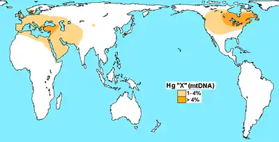 El subgrupo X1, con unos 10 000 años de antigüedad, está restringido al Medio Oriente, así como al Norte y Este de África. En cambio X2, con unos 21.000 años, tiene mayor dispersión en todo Eurasia Occidental, llegando hasta Norteamérica.