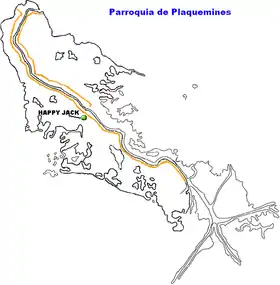 Localización de Happy Jack en el mapa de la Parroquia de Plaquemines.