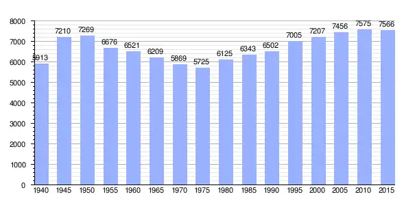 Gráfica de evolución demográfica de Hara entre 1940 y 2015 |