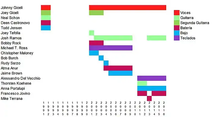 Joey Gioeli Christopher Maloney Bobby Rock Neal Schon Deen Castronovo Todd Jensen Josh Ramos Michael T. Ross Jamie Brown Atma Anur | ||