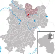 Se encuentra ubicado al noreste del estado, cerca de la orilla derecha del río Rin, de la orilla norte del río Lahn, y de la frontera con el estado de Hesse.