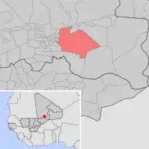 Se encuentra ubicada en el centro-este del país y al sur de la región de Tombuctú, en la zona de la sabana inundada del delta interior del Níger-Bani, cerca de la frontera con Burkina Faso.