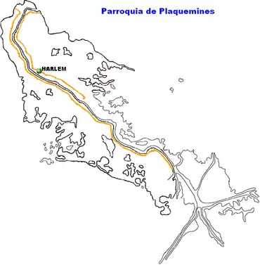 Localización de Harlem en el mapa de la Parroquia de Plaquemines.