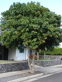 Árbol de tamaño mediano, de hasta 24 m de altura y un diámetro de tallo de 6 dm y suele verse mucho más pequeño. Como árbol callejero, en su mayoría tiene menos de 6 m de altura con una corona atractiva y bien formada. El tronco es de forma irregular, a menudo estriado. La corteza es gris y escamosa.