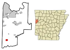![]() Localización en el condado de Sebastian y en el estado de Arkansas | ||