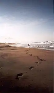 - Las ondas plateadas y azules representan la playa de Hatillo.