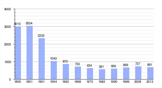Gráfica de evolución demográfica de Haut-Valromey entre 1800 y 2013 |