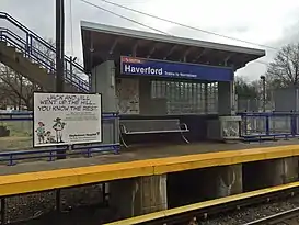 La estación Haverford cuenta con 2 plataformas laterales y 2 vías. La estación también cuenta con 34 de espacios de aparcamiento.