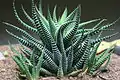 Haworthiopsis attenuata (Haw.) G.D.Rowley | característico diseño de protuberancias blancas (tubérculos) en forma de banda, normalmente horizontales en la cara externa y transversales en la interna | Sudáfrica (zona meridional de la Provincia del Cabo) |