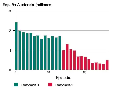 La serie se estrenó el 16 de marzo de 2009, emitiéndose los lunes a las 22:15. La primera temporada finalizó el 8 de junio de 2009 con la emisión del episodio 13. La segunda temporada se estrenó el martes 19 de enero de 2010, con unos resultados de audiencia muy por debajo de los de la primera temporada. Tras varios cambios de horario debido a sus discretos datos de audiencia, la serie finalizó el jueves 8 de abril de 2010 a las 00:15 de la noche, habiéndose emitido los 26 capítulos previstos inicialmente.