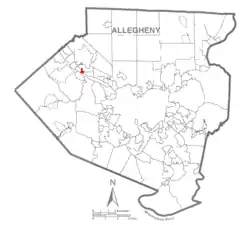 ![]() Ubicación en el condado de Allegheny ![]() Ubicación del condado en Pensilvania ![]() Ubicación de Pensilvania en EE. UU. | ||