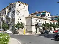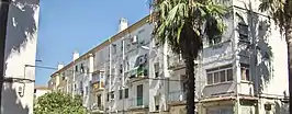 El barrio abarca el conjunto de viviendas que fue la primera operación a gran escala de vivienda pública en la posguerra y la primera promoción de viviendas del régimen franquista en la ciudad. Fue construida por iniciativa de Falange Española y de la JONS en 1940 y en ella estuvieron implicados la mayoría de los arquitectos activos en la época: Fernando Guerrero-Strachan Rosado, Juan Jáuregui Briales, Enrique Atencia Molina, Eduardo de Burgos, Ortega Marín y Gutiérrez Escuria.