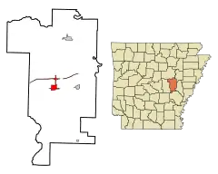 ![]() Localización en el condado de Prairie y en el estado de Arkansas | ||