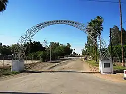 ![]() El arco conmemorativo de la antigua hacienda Hechicera, precursora del poblado existente y donde más tarde se dotó de solares al ejido Querétaro. Se encuentra a la vera de la carretera federal 2, en su cuerpo norte, de San Luis Río Colorado a Mexicali.