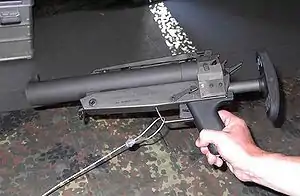 ![]() Un HK69A1 del Heer, con la culata plegada. | ||