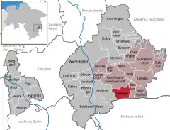 Se encuentra ubicado al sureste del estado, a poca distancia de la frontera con el estado de Sajonia-Anhalt.