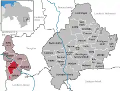 Se encuentra ubicado al sureste del estado, a poca distancia de la frontera con el estado de Sajonia-Anhalt.