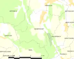 - Ubicación de Heimersdorf y de las comunas limítrofes en el mapa de Francia (enlace roto disponible en Internet Archive; véase el historial, la primera versión y la última).