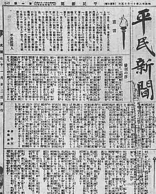 El anarquista japonés Kōtoku Shūsui y Toshihiko Sakai fundaron el Heimin Shimbun[1] en 1903.[2] Kōtoku Shūsui también fue uno de los editores del periódico. A principios de 1904, era la principal publicación de Tokio que abogaba por el socialismo.[3] Ochenta y dos personas finalmente expresaron su lealtad al socialismo en esta publicación. Dos de esas personas, Uchiyama Gudō y Kōtoku Shusui, fueron condenados y ejecutados en el incidente de alta traición. El gobierno Meiji prohibió varios números del periódico porque se los consideraba políticamente ofensivos. Los editores fueron arrestados, multados y encarcelados. El documento dejó de publicarse en 1905. El último número, publicado en rojo, se imprimió el 18 de enero de 1905. Después de la desaparición de este documento, el movimiento socialista contra la guerra también desapareció.[4]