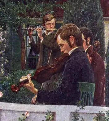 En 1905, Vogeler completó su conocida pintura de gran formato Tarde de verano (El concierto),[10] que muestra un concierto en la terraza de Barkenhoff y representa a su esposa Martha como la figura central, mirando pensativa a lo lejos. El borzoi ruso frente a ella en las escaleras fue un regalo de Alfred Heymel. Con la excepción de Rilke, casi todos los miembros del círculo de Barkenhoff están reunidos allí. Vogeler, en el extremo derecho medio oculto, se muestra tocando el violonchelo, a su izquierda está su hermano Franz con el violín, el flautista es su cuñado Martin. Paula Modersohn-Becker se puede ver en el lado izquierdo de la imagen, junto a ella Agnes Wulff y Clara Rilke-Westhoff. El hombre barbudo del fondo es Otto Modersohn. La pintura se mostró en Oldenburg con motivo de la Exposición de Arte del Noroeste de Alemania. Allí, Vogeler recibió la Gran Medalla de Arte y Ciencia. El cuadro se considera la culminación de su primer período creativo.[11]