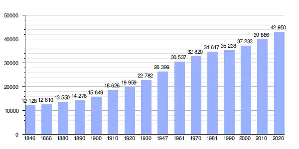 Todos los datos históricos relativos al actual municipio, el siguiente gráfico refleja su evolución demográfica, incluyendo municipios después de efectuada la fusión el 1 de enero de 1977.