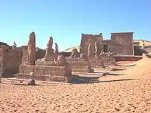 - Grafiti en Asuán: se muestra adorando un cartucho de Ramsés II.