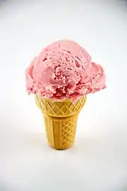 El helado de fresa es un helado hecho con fresa o sus correspondientes saborizantes. Está hecho a partir de la mezcla de la fresa con huevos, crema, vainilla y azúcar.[1][2] La mayoría de helados de fresa tienen un color rosado o rojo pastel. Esta variedad de helado data de antes de 1813, fecha en la que empezó a ser servido durante la guerra anglo-estadounidense.[3] Junto con la vainilla y el chocolate, la fresa es uno de los tres sabores del helado napolitano. Los sándwiches de helado preparados al estilo napolitano incluyen helado de fresa.
