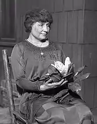 Helen Adams Keller (Tuscumbia, Alabama, 27 de junio de 1880-Easton, Connecticut, 1 de junio de 1968) fue una escritora, oradora y activista política sordociega estadounidense. A la edad de diecinueve meses sufrió una grave enfermedad que le provocó la pérdida total de la visión y la audición.[1] Su incapacidad para comunicarse desde temprana edad fue muy traumática para Helen y su familia, por lo que estuvo prácticamente incontrolable durante un tiempo.[2] Cuando cumplió siete años, sus padres decidieron buscar una instructora y fue así como el Instituto Perkins para Ciegos les envió a una joven especialista, Anne Sullivan, que se encargó de su formación y logró un avance en la educación especial. Continuó viviendo a su lado hasta la muerte de ésta en 1936.