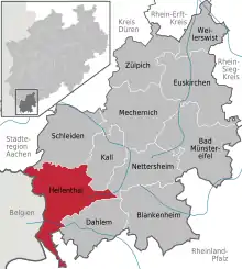 • Total | 7940 [1][lower-alpha 1] de los que a la propia Hellenthal corresponden 1937 hab. | |||