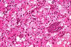 ![]() Micrografía de un hemangioblastoma cerebeloso. Tinción HPS. | ||