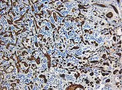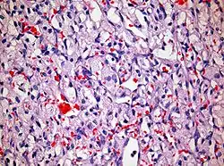 En el diagnóstico diferencial con la metástasis de carcinoma de células renales (que también es común en pacientes con VHL) puede ser particularmente útil la falta de tinción de las células estromales para el antígeno epitelial de membrana (EMA), y la detección de una baja actividad proliferativa en la tinción para Ki67 / MIB-1.[12][13]