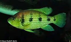 Hemichromis elongatus es una especie entre los peces de la familia Cichlidae en el orden de los Perciformes.